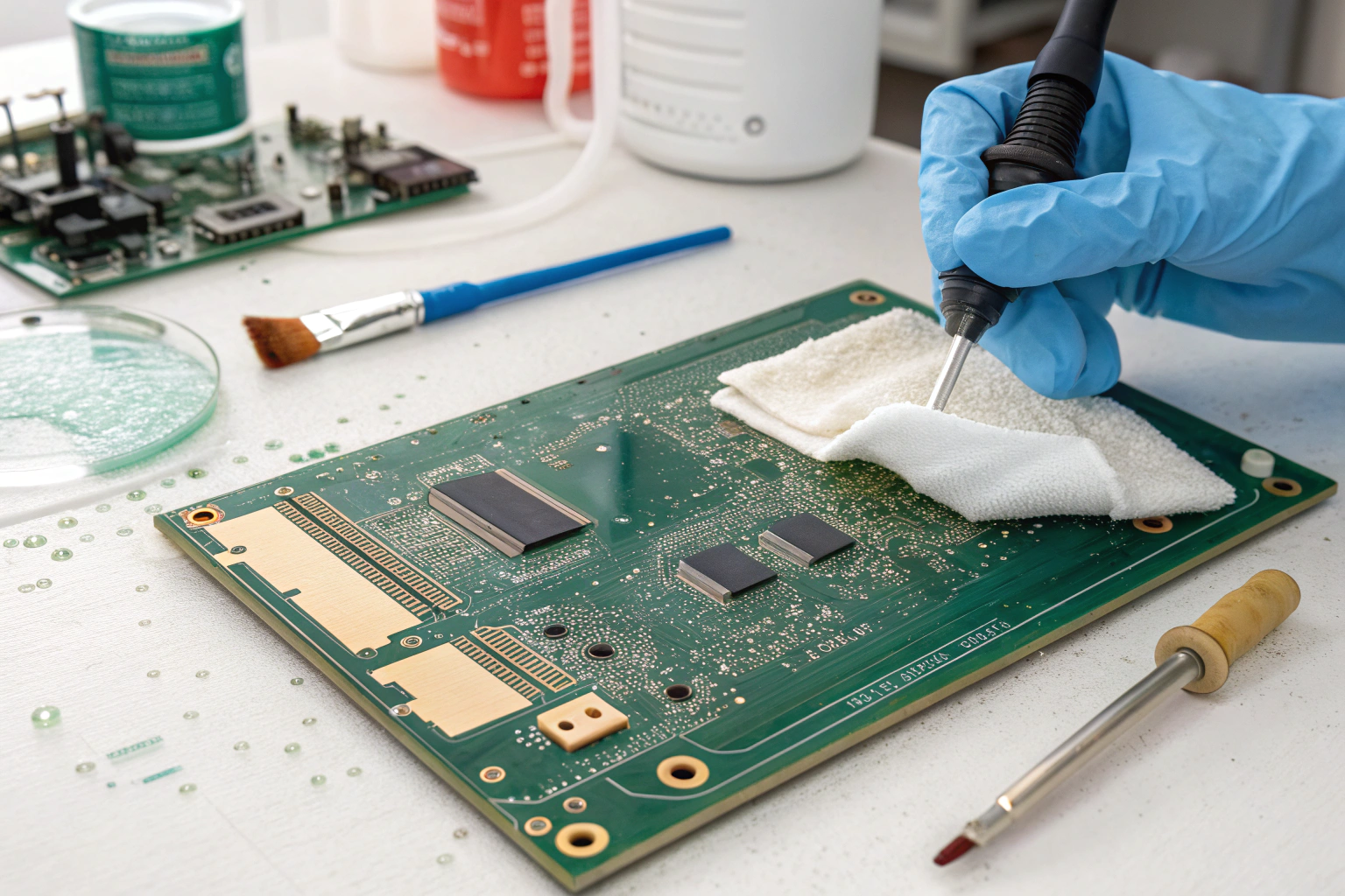 In manufacturing environments, any chemical applied to a PCB must be fully controlled and fully removed to avoid latent failures.
