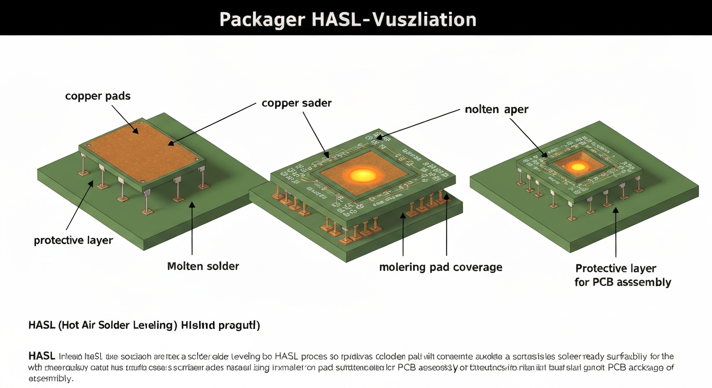 HASL (Hot Air Solder Leveling) coats exposed copper pads with molten solder, creating a protective and solder-ready surface for PCB assembly.