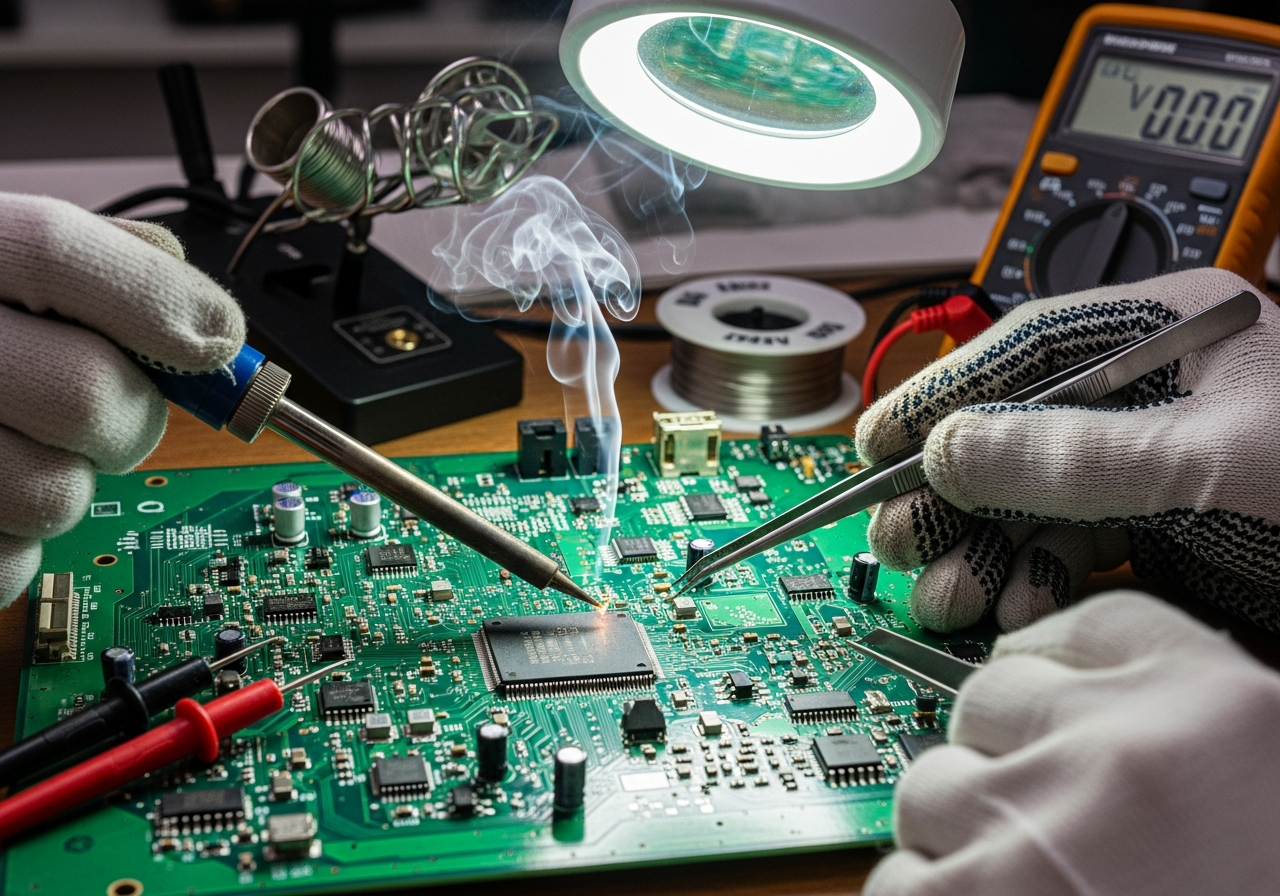 In a factory environment, soldering repair is performed in dedicated rework stations. These stations use ESD protection, temperature-controlled tools, and standardized rework procedures. Random manual fixes are avoided to reduce secondary damage.