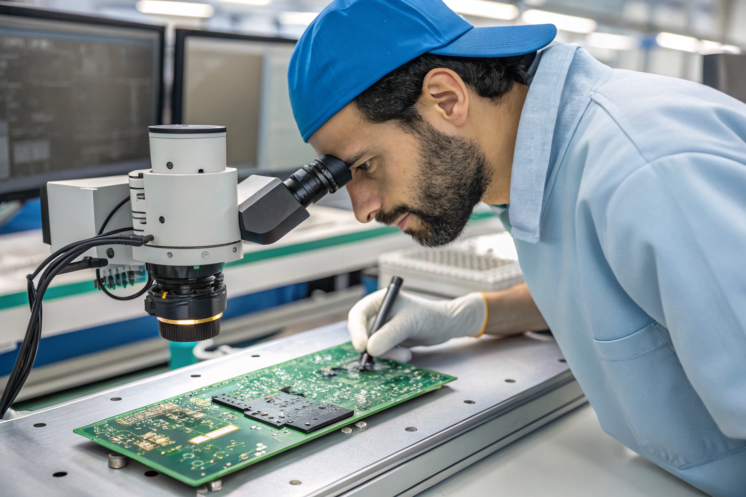 In factory workshops, inspection is supported by magnification tools or Automated Optical Inspection (AOI) systems. AOI detects solder bridges, insufficient solder, and placement errors that may not be visible to the naked eye.