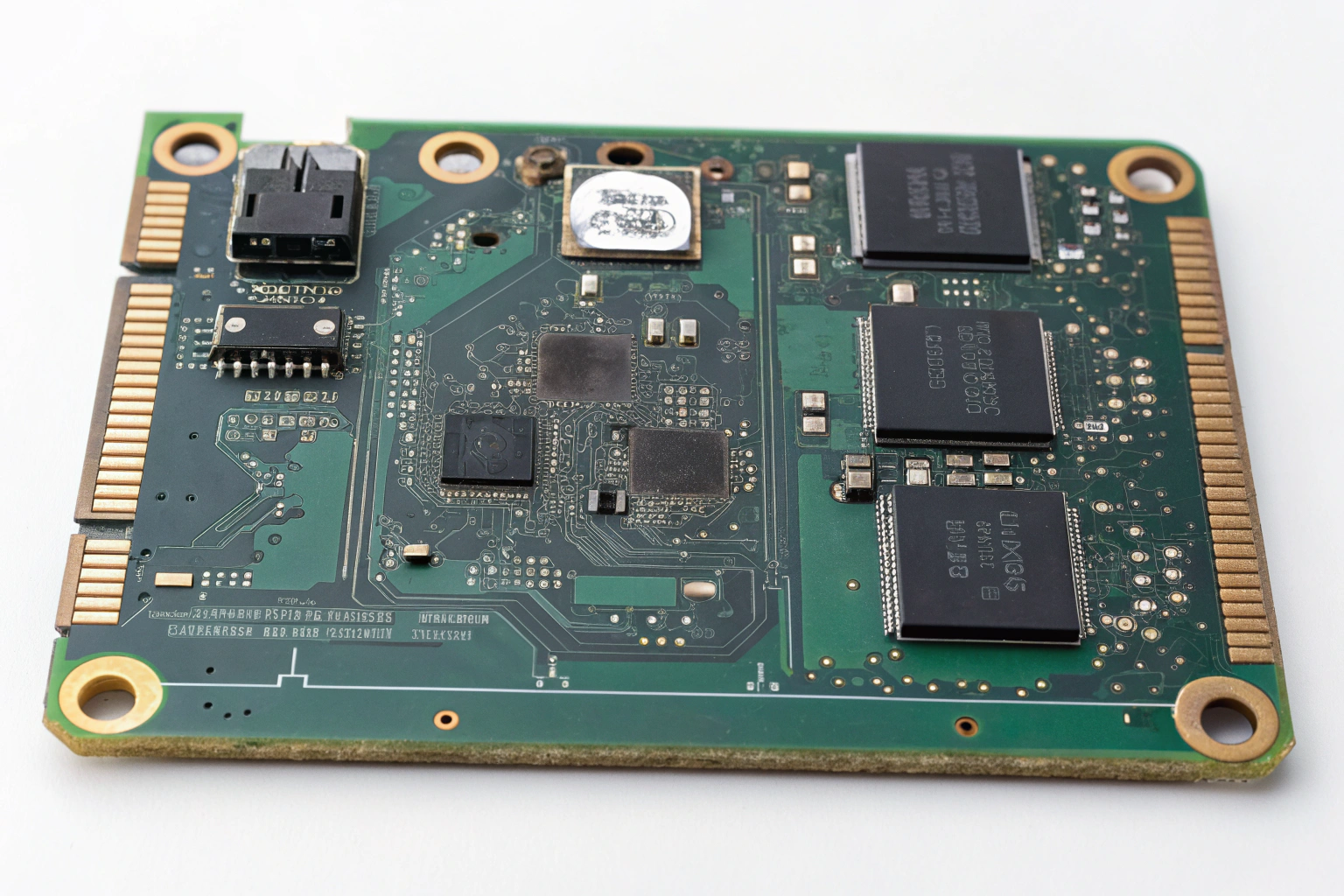 Corrosion often starts under components or connectors where it is hard to see. Over time, copper is eaten away, breaking traces or vias.