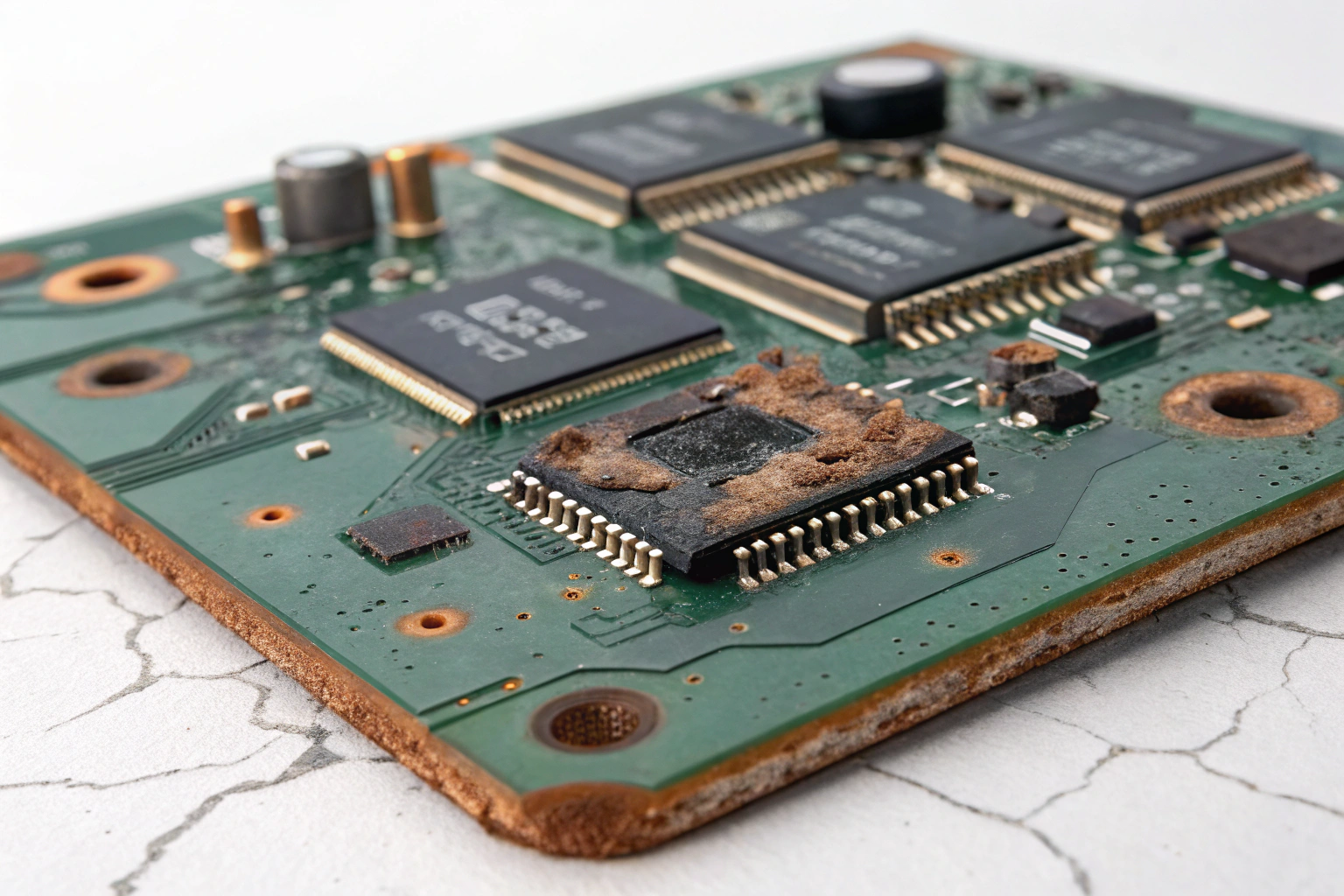 Once corrosion reaches internal layers, the PCB is usually beyond repair.