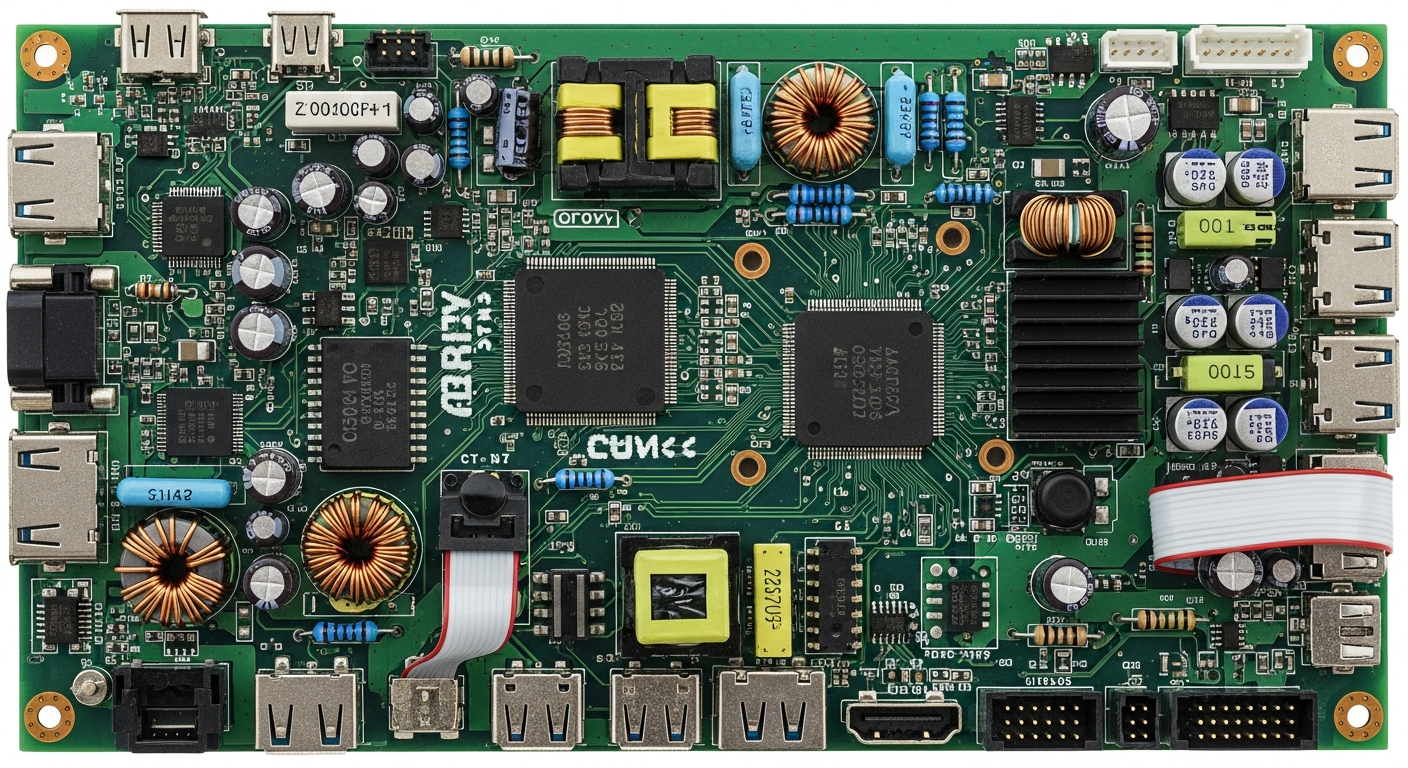 Connectors bridge the board with external modules, power supplies, or mechanical interfaces.