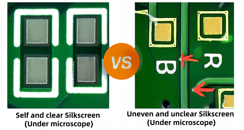 We understand that even the smallest imperfections can compromise the integrity of a PCB. That’s why our silkscreen application follows strict quality standards, aiming for an even and clear finish. Through rigorous quality checks, we maintain consistency and prevent any unclear or uneven markings, which ensures that your products meet the highest expectations.