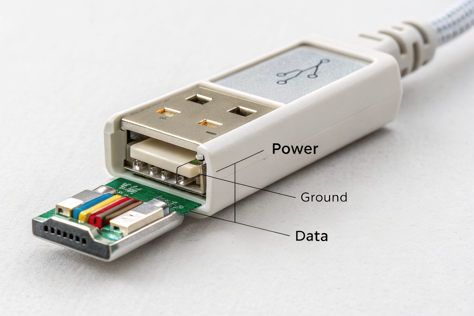 These four pins appear in USB 2.0 connectors. Newer standards like USB-C add many more pins for high-speed data, orientation detection, and power delivery.