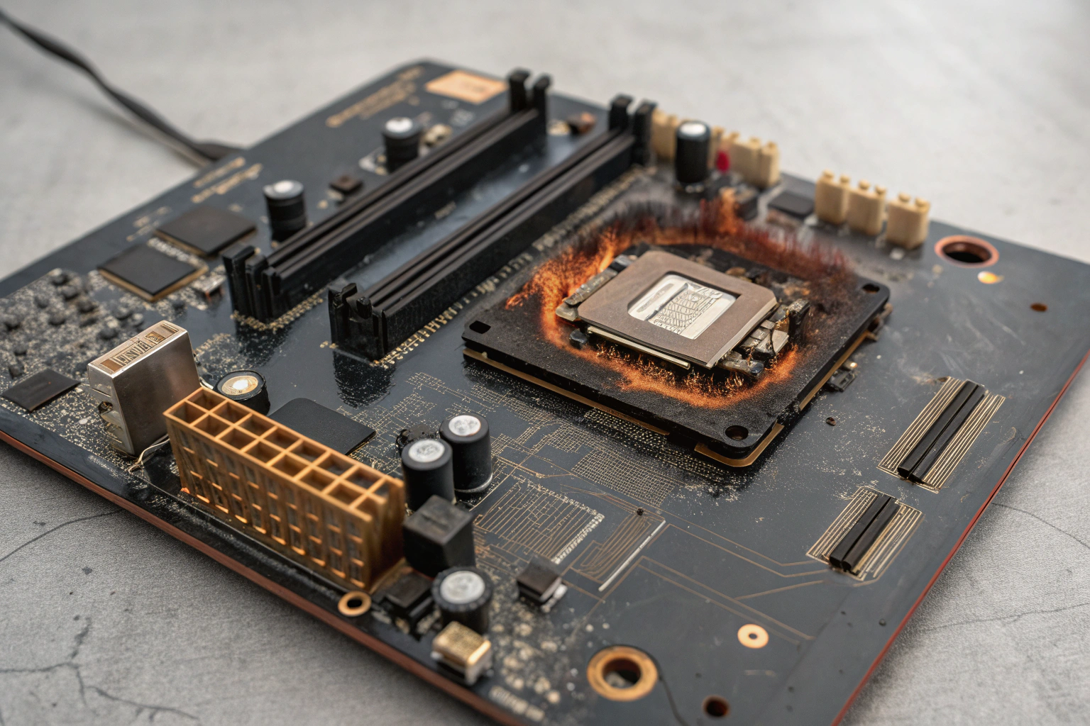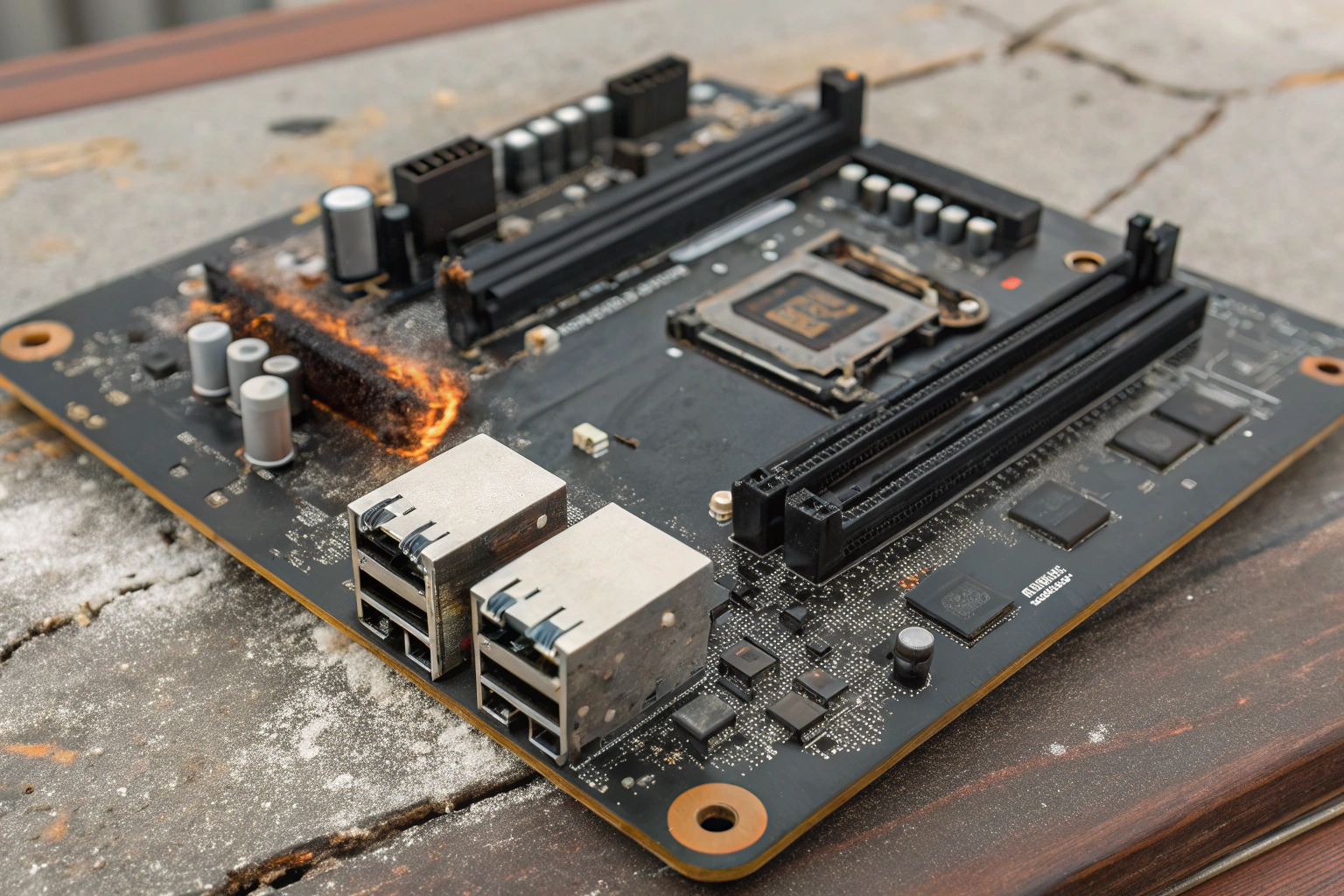 Liquid damage is a well-known cause of motherboard failure. Water, condensation, or chemical exposure can create short circuits, corrosion, and insulation breakdown. Even small amounts of moisture can cause long-term damage if not addressed immediately.