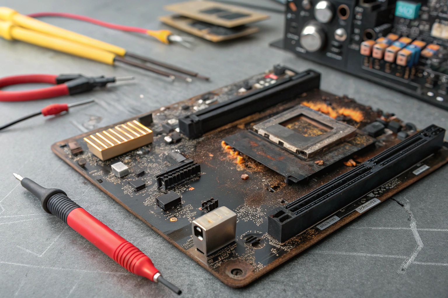 Electrical stress is one of the most frequent causes of motherboard failure. Sudden power surges, voltage spikes, or unstable input power can exceed the tolerance of onboard components, especially voltage regulators, MOSFETs, and power management ICs.