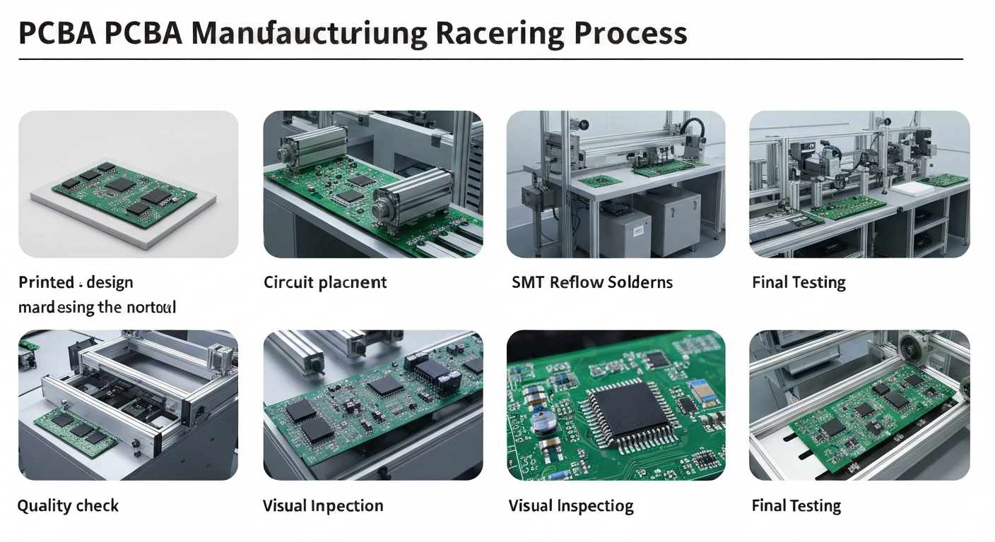 PCBA begins with a bare PCB. Components from the BOM are placed using SMT machines or manual DIP assembly. Reflow or wave soldering completes the electrical bonding. After this, AOI, X-ray, ICT, and FCT verify whether the circuit performs as intended.