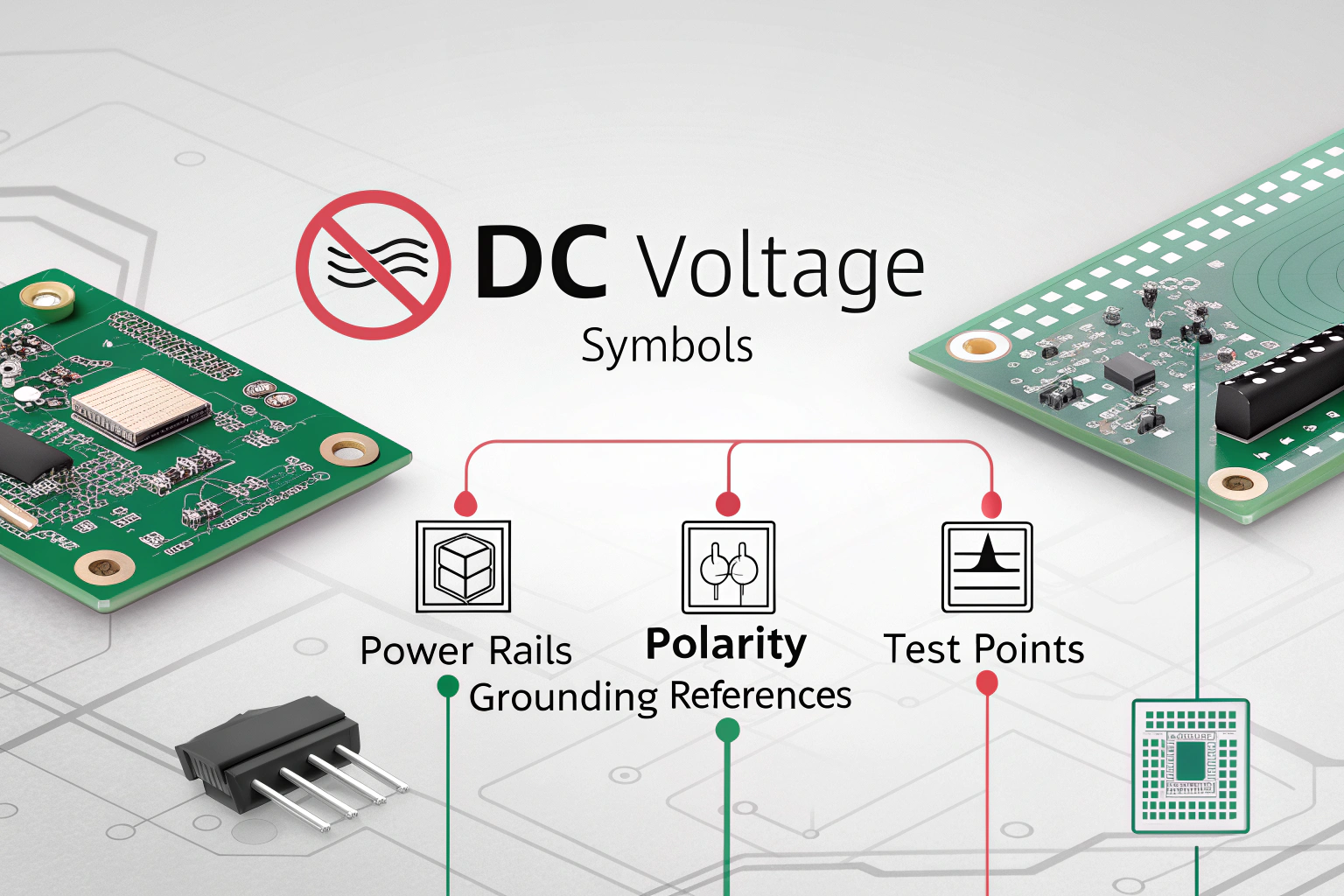 DC voltage symbols on PCBs help identify power rails, polarity, test points, and grounding references, improving assembly accuracy and reducing rework.