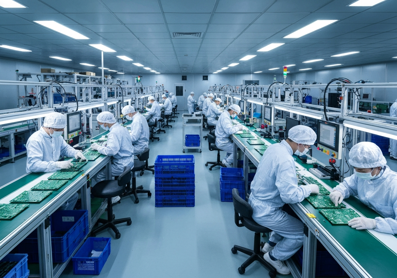 Inside a modern assembly workshop, layout and flow are designed around soldering integrity. Incoming inspection checks PCB finish, flatness, and solderability. Component preparation includes lead forming and baking when required.
