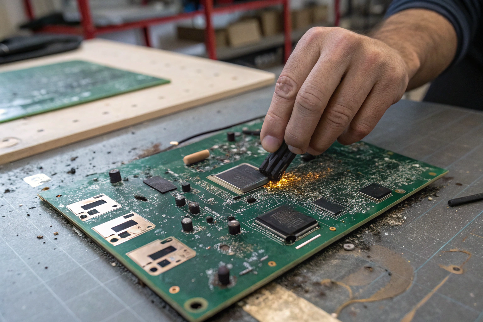 Circuit boards are sensitive assemblies made of copper traces, solder joints, components, and laminate materials. Human contact introduces electrostatic discharge, moisture, oils, and mechanical stress. In manufacturing, these risks are well understood and strictly controlled.